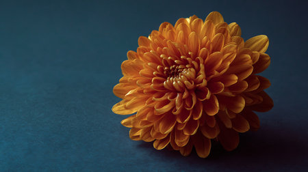 Orange chrysanthemum on a dark blue background. Selective focus.