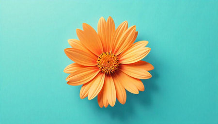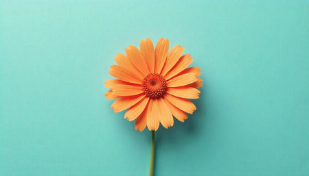 Radiant orange gerbera daisy against a serene teal background