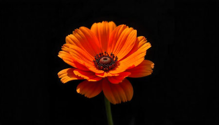 Vibrant orange flower blossom against a solid black backdrop