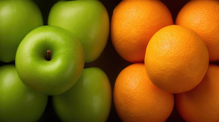 A stunning visual display of fresh green apples and bright oranges, perfect for emphasizing healthy eating and vibrant colors in food photography that inspires delicious snack ideas.