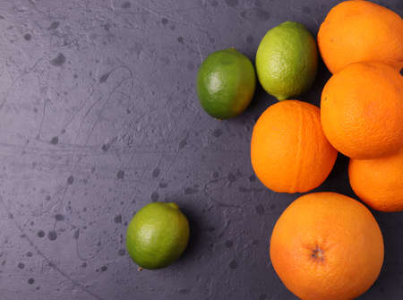 Close-up ,The Orange fruit on purple backdrop.The fruit have many vitamin C. Macro photo fresh orange