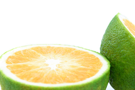 Two color groups of Citruses. Oranges, tangerines, limes, pomelo, grapefruits.