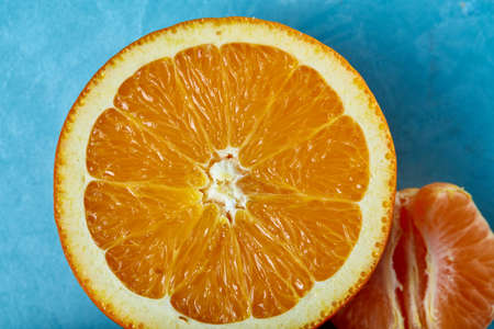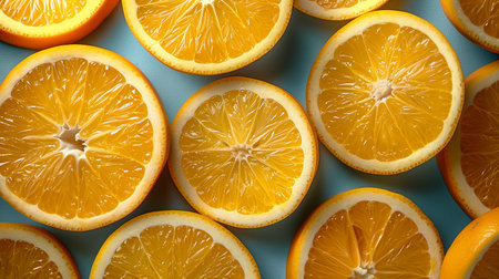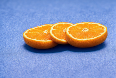 Close Up of Fresh Orange Slices on a Blue Background