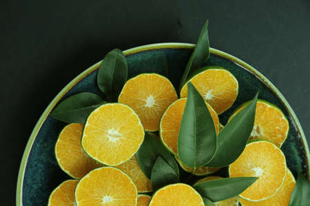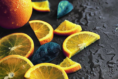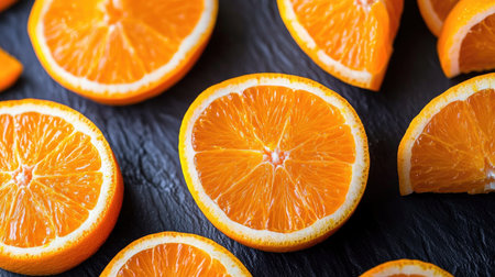 fresh orange slices on a dark background