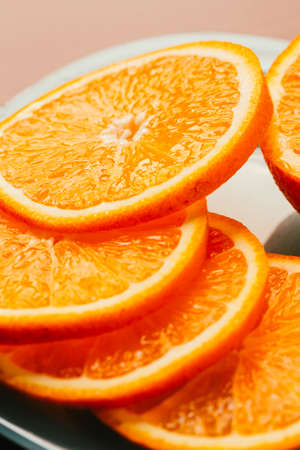 Fresh sliced orange slices close-up on plate