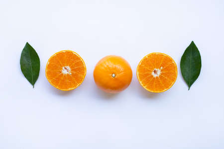 High vitamin C, Juicy and sweet. Fresh orange fruit on white background.