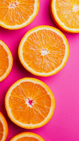 Fresh orange slices on vibrant pink background