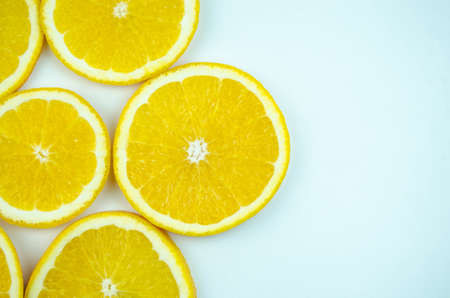 Fresh orange slices on white background. Copy space