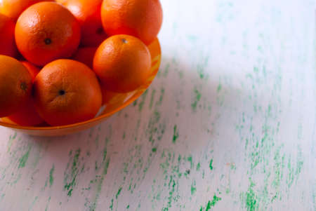 Dish with oranges stands on the old board