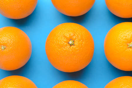 Fresh oranges on color background
