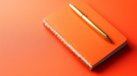 A stunning flatlay image featuring an orange notebook paired with a gold pen, set against a vibrant background perfect for inspiring creativity and productivity.