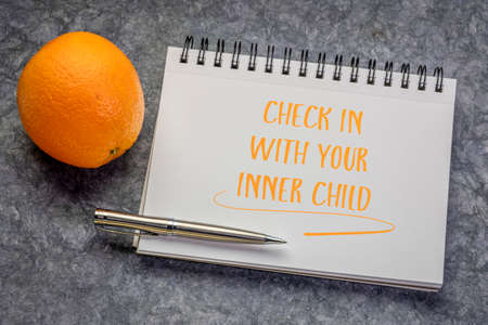 check in with your inner child - inspirational note in a spiral notebook, psychology and childlike subpersonality concept