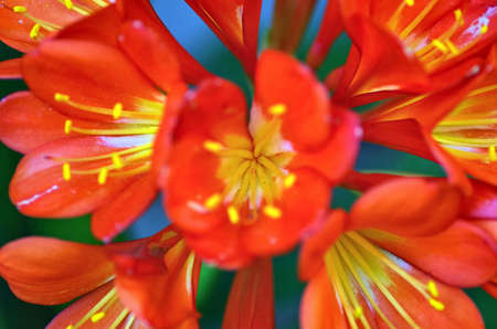 Orange clivia flowers background. Family of Amaryllis.