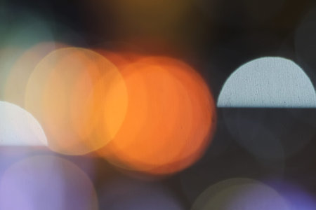 Bokeh abstraction, round bright multi-colored lights out of focus, holiday background.