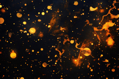 Abstract golden splatter pattern with glowing highlights on black background, creating a luxurious and festive atmosphere