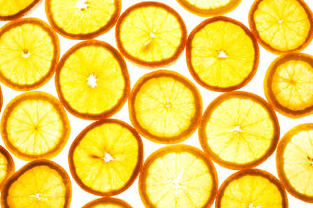 Abstract background of sliced ??orange and lemon. Close-up view.