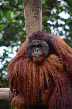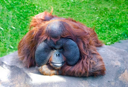 urangutan pongo pygmaeus with cheek pad resting relaxing in park