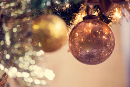Closeup on Christmas tree decoration.Christmas and New Year concept background.