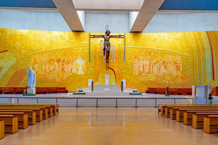 FATIMA, PORTUGAL, MAY 27, 2019: Interior of basilica of holy trinity in Fatima, Portugal