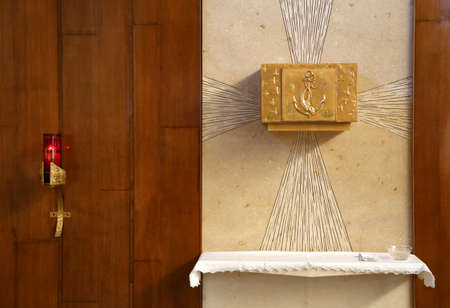Golden Tabernacle with consecrated hosts in the Christian Church