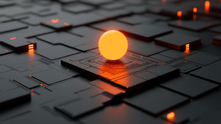 This stunning abstract digital background features an illuminated sphere on a geometric texture, creating a modern and futuristic atmosphere. Ideal for technology concepts.