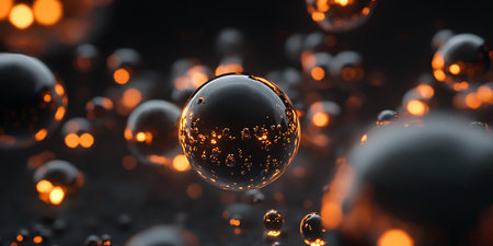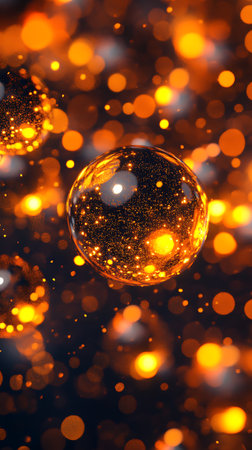 Glowing spheres in an abstract background creating a magical atmosphere with glittering particles