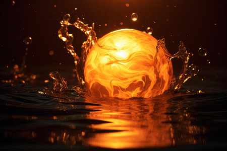 Vibrant and dynamic fiery water splash sphere against a dark background, creating a mesmerizing and intense abstract motion. Perfect for digital art and photography projects