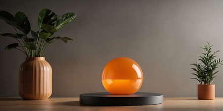 AI Generated. Product background podium display mockup orange light round podium product