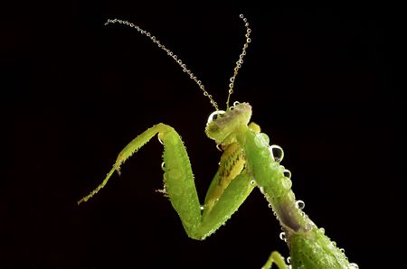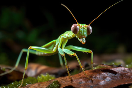 Praying Mantis on a Dark Background in Dramatic Lighting