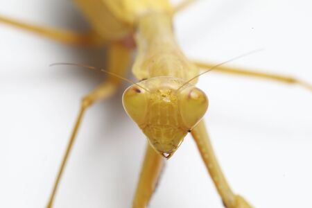 Giant Asian Yellow Praying Mantis (Hierodula membranacea) isolated on white background.