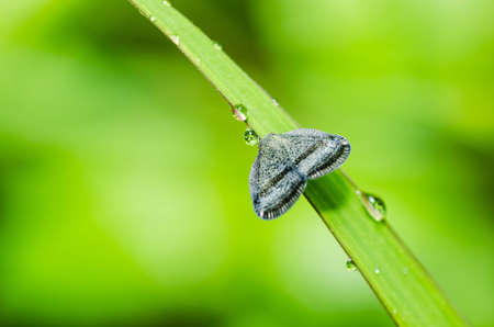 Hopper on the plant of acid lime which is known as passion vine hopper. It is a serious insect pest of the acid lime fruit crop plant. Used selective focus.