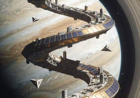Futuristic space station. Futuristic cosmos. 3D rendering