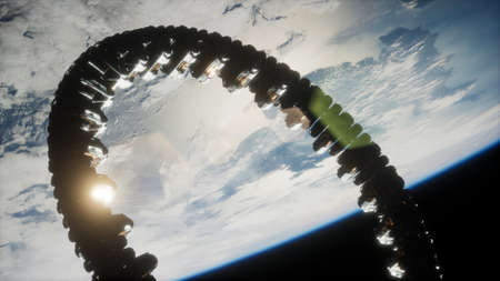 International Space Station orbiting the planet Earth in outer space. 3D rendering