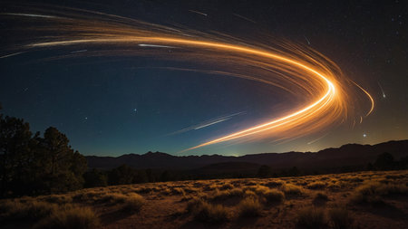 A stunning view of a glowing meteor as it streaks through space, leaving a vibrant trail of light. This image captures the beauty and wonder of the cosmos.