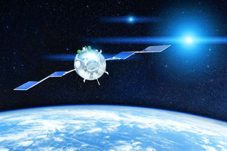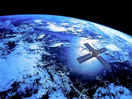 Space satellite above the earth in space.