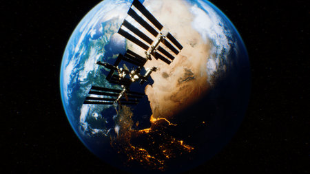 space station orbiting Earth. Elements of this image furnished by NASA