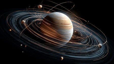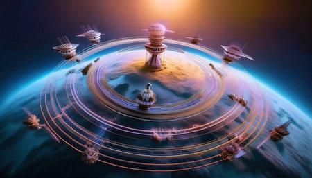 AI system managing a planetary system for order and efficiency. Concept Planetary Management, AI System, Efficiency, Order, Automation