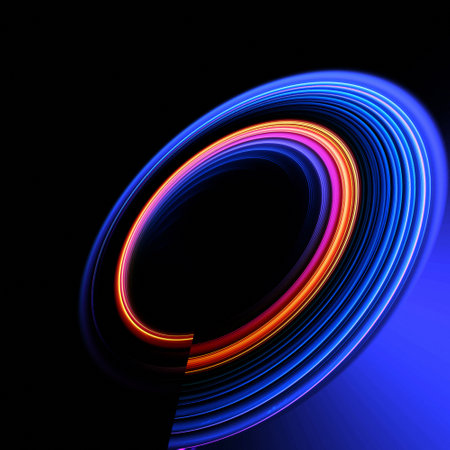 Vivid abstract image showcasing dynamic light trails in blue and orange, creating a mesmerizing circular pattern against a dark background, perfect for creative projects.