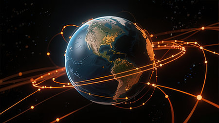 High-speed connection lines glowing across a simulated globe in space, symbolizing global reach
