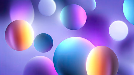 Explore a captivating scene of colorful abstract spheres illuminated by soft light. This image offers a modern aesthetic perfect for design, art, and decorative purposes.