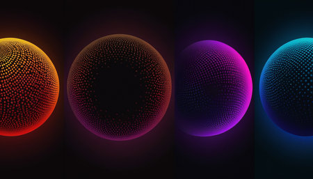 Vibrant Glowing Spheres on Dark Background: Abstract Cosmic Digital Art Design