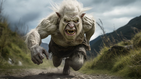The ogre beasty is enraged, and in the background, against a white backdrop, he is rallying the troops for an attack. Generative AI