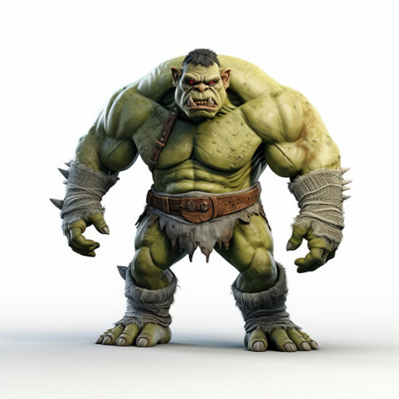 the ogre, a mythical creature from fantasy folklore, stands proudly in a powerful full-body pose on a crisp white isolated background, showcasing its imposing physique and gruesome features in stunning 3d detail, perfect for use in fantasy art, gaming, and mythology-inspired designs. ai generated