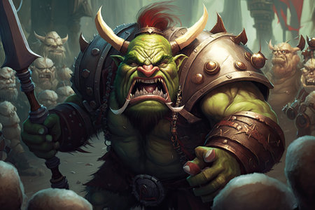 Fierce Green orc. Warrior creature monster. Generate Ai