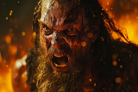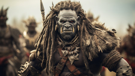 realistic orc character screaming in war