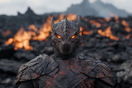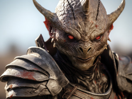 Fantasy portrait of a monster in armor, close-up.