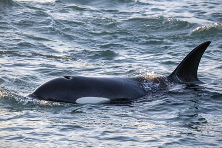 Beautiful killer whale swimming in the ocean on a sunny day.
