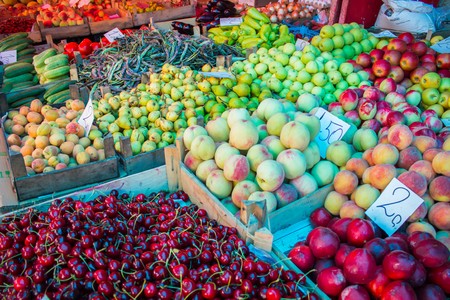 Fruits and vegetables at a market in the city of Lisbon, Portugal