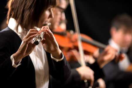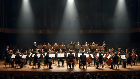 Symphonic orchestra concert professional musicians performing classical music on stage