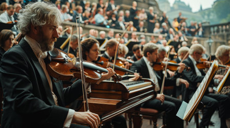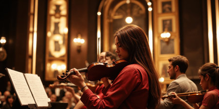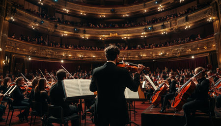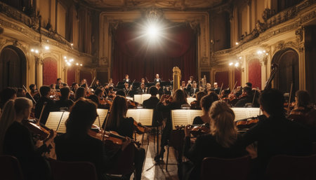 Captivating classical music concert with orchestra performing in a grand historic theater setting